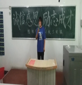 班会活动由各班班长主持,主题鲜明,各具特色,彰显了优秀的班级文化。主持人们更是深入浅出,向同学们强调了作为新一代老员工应有的诚信感恩精神:在学习上,秉持诚实守信原则和为自己负责认真的态度;在生活中,对那些给予我们帮助和温暖的人心怀感恩。“百善孝为先”,为人子女要学会感激赐予我们生命的父母,一个温馨的电话,一句平凡的问候都是对父母最真挚的爱;“春蚕到死丝方尽,蜡炬成灰泪始干”,老师们无私的奉献更值得拥有我们的赞美与感恩。主持人一字一句触碰心灵,引起大家深切的情感共鸣,同学们也都积极参与进来,分享自己关于诚信感恩的心得体会,言语间,一股股正能量在他们中间传递。最后,各班班委还就“励志成才”这一话题发表自己的想法,并对班会内容做了总结归纳,希望同学们会后认真思考本次主题班会所要传递的的核心精神与内涵。
