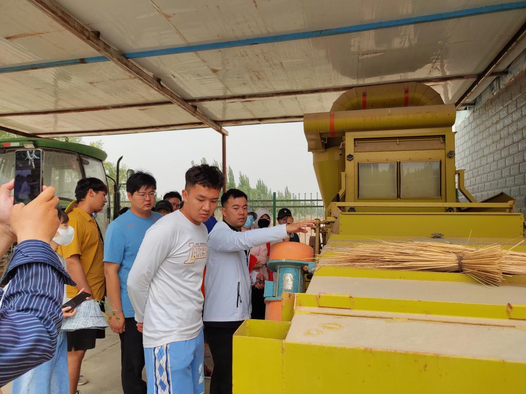 科研示范基地助理农艺师韦继超为同学们介绍了水稻收获、脱粒、筛选机械运行原理和操作注意事项,并和同学们交流了科研学习上的一些经验。