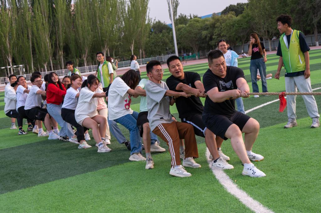 本场活动共设有拔河比赛、绑腿跑、托球跑、背夹球和集体跳绳五个项目,比赛现场,气氛热闹,老师同学们热情高涨、奋勇争先,加油声、呐喊声、欢呼声此起彼伏,一幅幅画面、一个个镜头、一阵阵欢呼声,将运动会推向一个又一个高潮。