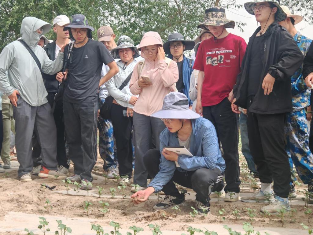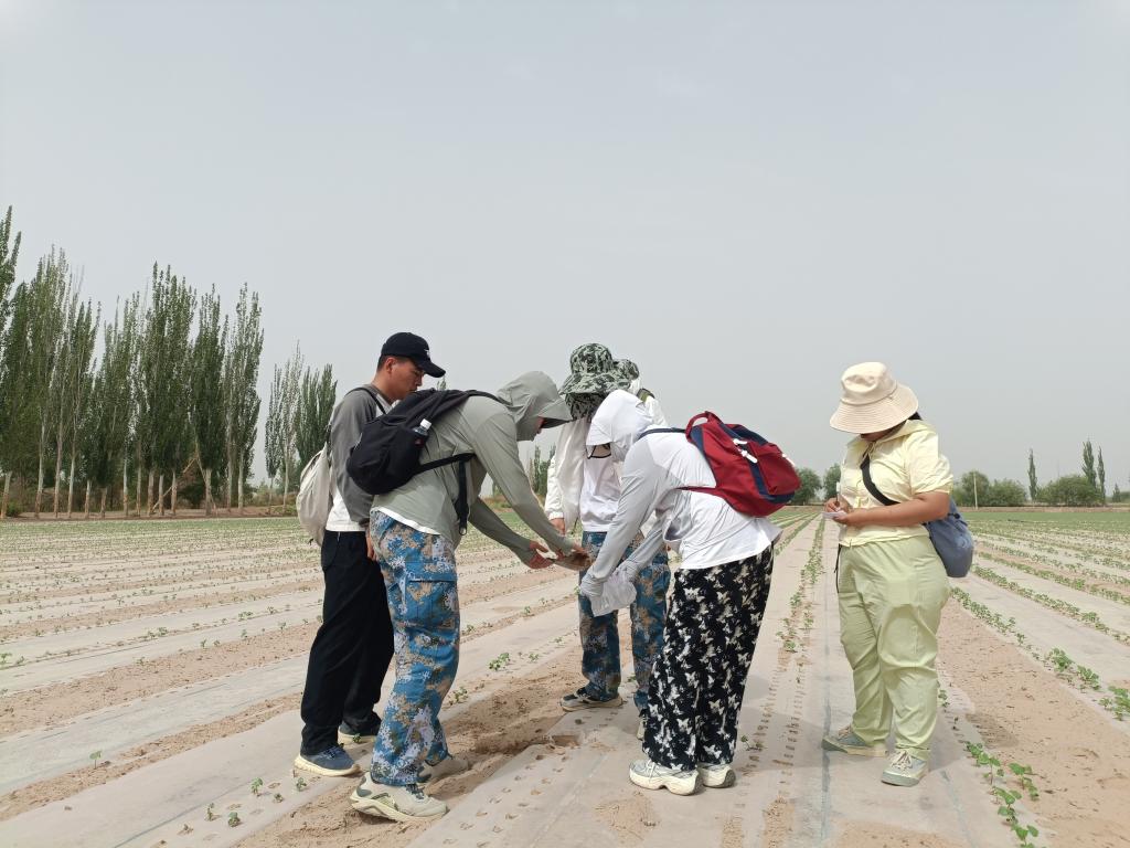 5月20日,304永利集团官网农学2021级、种子科学与工程2021级两个专业校内实习员工前往304永利集团官网南疆产教融合现代农业实训基地进行棉花、玉米、大豆等作物的苗情调查,同时探究局部地块不出苗原因。