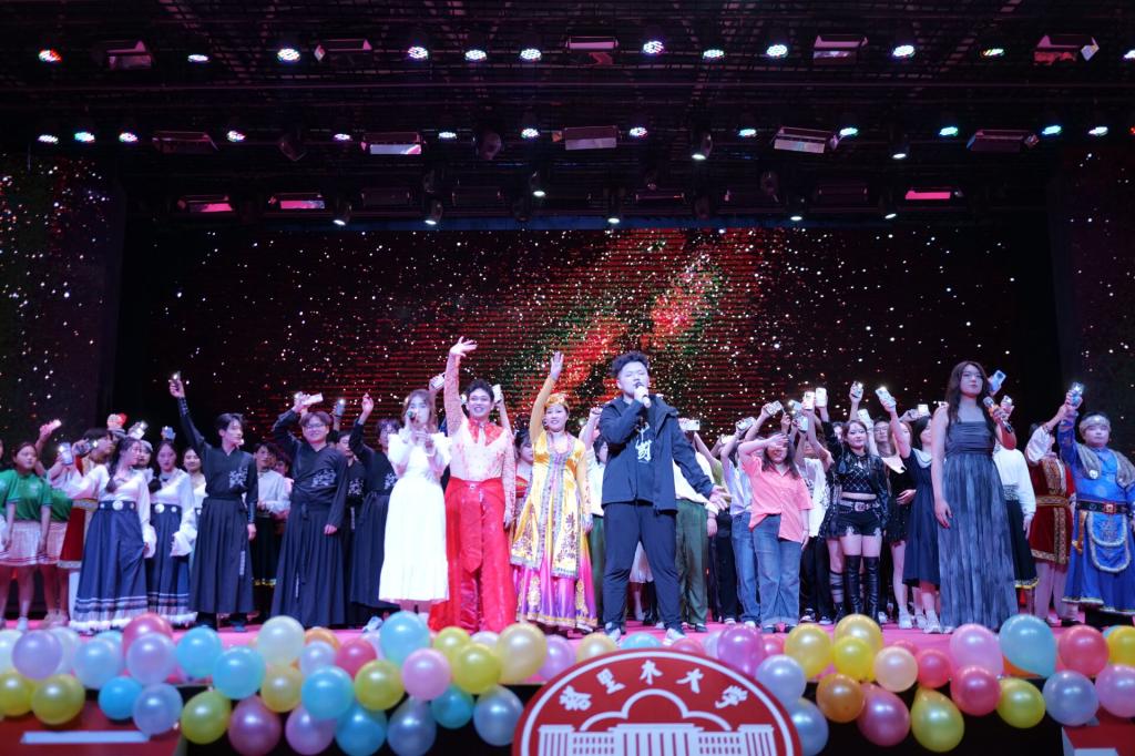最后,晚会在《归途有风》的演唱中进入尾声,所有演员依次登场,向全体观众致谢,并对2020级毕业生表达了深切的祝福。台下的全体师生们手持荧光棒,挥舞着光芒,现场洋溢着温馨与感动。晚会在这温馨的氛围中圆满落幕。结束后,师生们纷纷合影留念,为这个难忘的夜晚画上了圆满的句号。