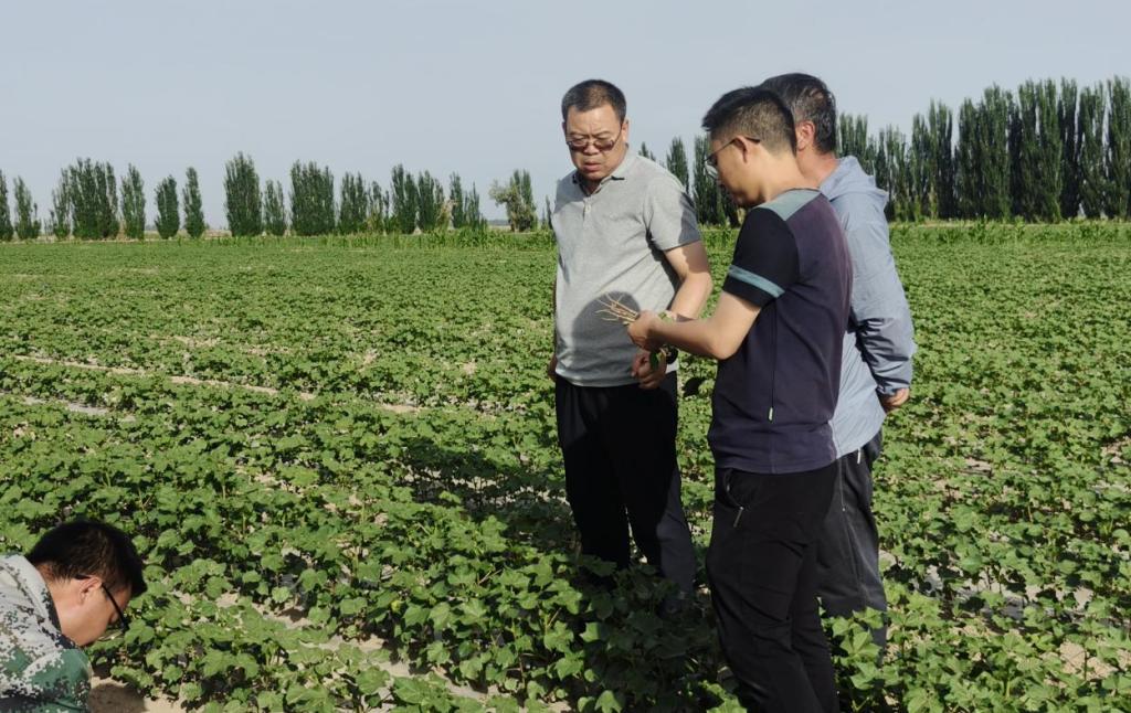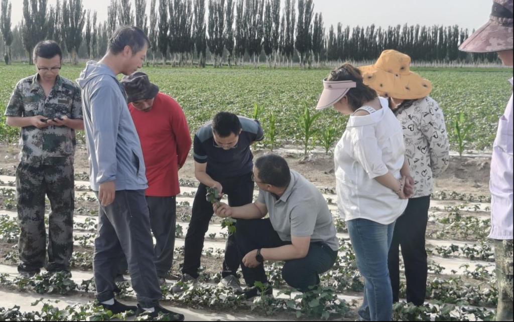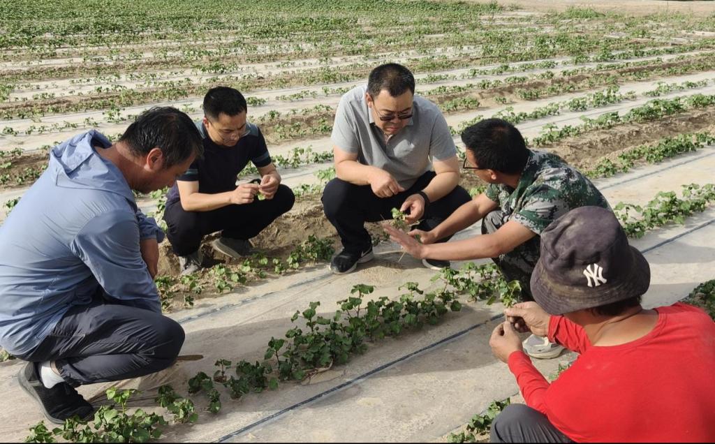 2024年6月5日,受8团11连连长廖雷寻求棉花药害诊断与种植技术援助。公司罗新宁教授、柳维扬教授、肖海兵副教授以及植物保护23级员工对该连棉花受到药害的情况进行实地考察及分析,对棉田进行诊断和实施挽救策略,减少职工们的经济损失,用科学技术推动农业发展。
