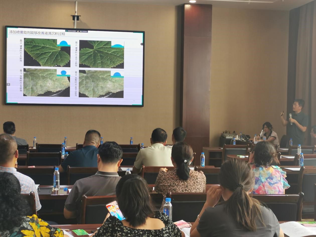 会上,刘峰教授做《蔬菜病虫害的高效化学防治技术》的学术报告,介绍了通过添加喷雾助剂改善液滴沉积过程,优化剂型和施药技术,提升化学助剂的应用效率,减少农药对环境的危害。
