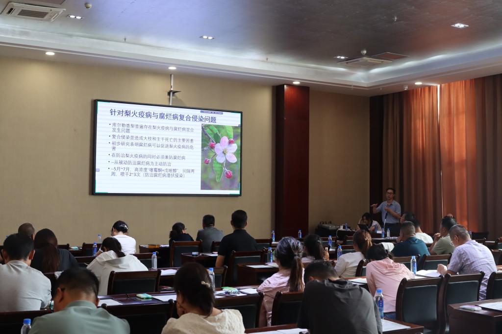 本次研修班是在前期调查和收集现有农业生产中植物保护技术问题的基础上,特邀李振宇、朱天生、李丽莉、董红强、徐春玲、蒲德强、刘峰等专家分别对蔬菜、果树等病虫害的种类鉴定、发生规律及天敌昆虫防控技术、高效化学防治技术等方面进行讲授,专家针对性讲解了南疆地区果蔬病虫害发生的来龙去脉,并结合现有生产技术提出当地果蔬绿色防控建议。