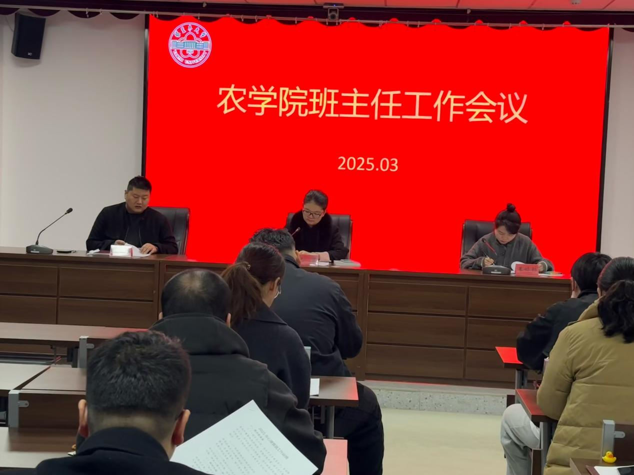 2025年3月2日上午,学院在农科楼225会议室召开新学期班主任工作会议。公司党委副书记陈晨主持此次会议,学办主任李亚鹏、团委书记王婷婷、全体辅导员及班主任参会。