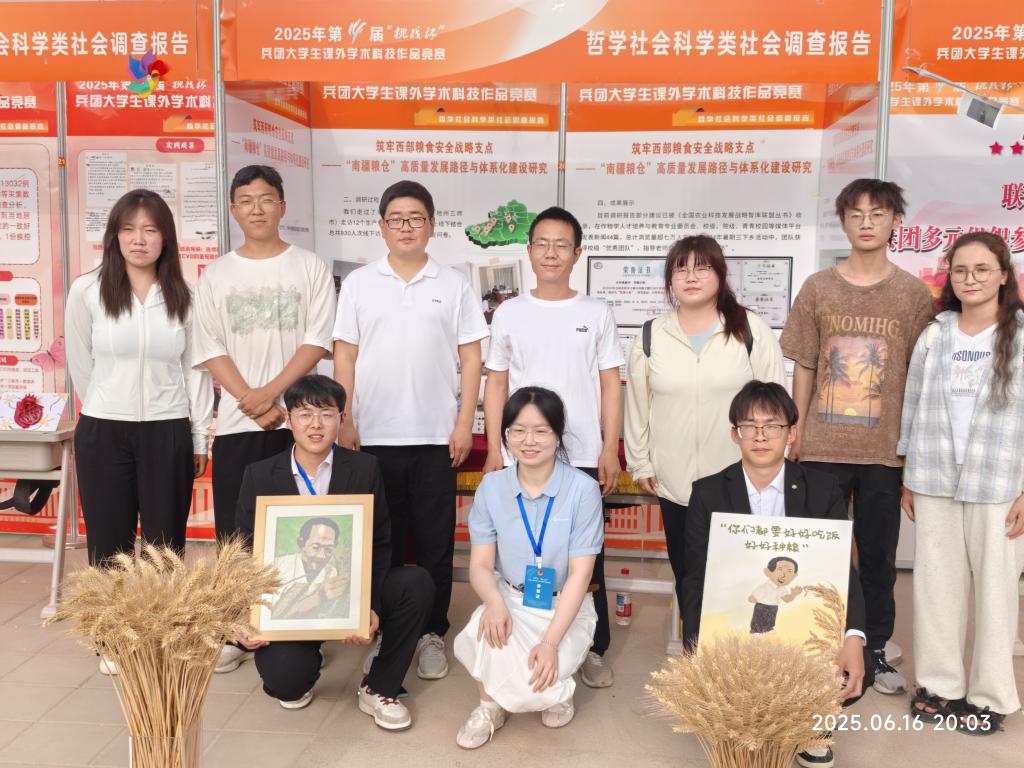 哲学社会科学类社会调查报告《筑牢西部粮食安全战略支点——“南疆粮仓”高质量发展路径与体系化建设研究》由农学系8名员工组成参赛团队,在指导教师崔政军、王进斌、乔航的具体指导下开展实践调研和报告撰写,项目研究立足国家粮食安全战略,依托南疆粮食生产实地调研数据,结合干旱绿洲农业特性,系统诊断“南疆粮仓”建设的关键问题与需求,获评兵团三等奖。