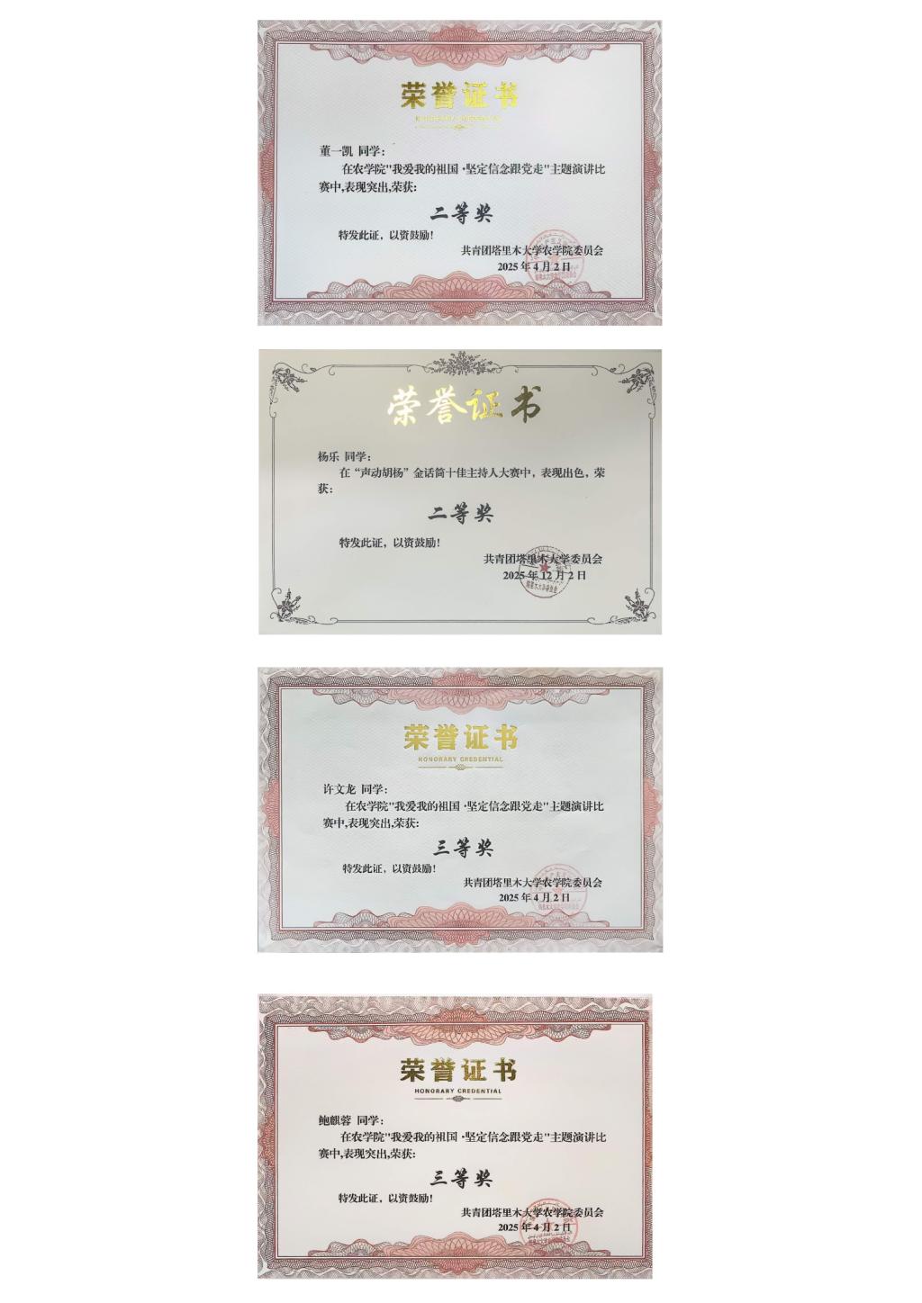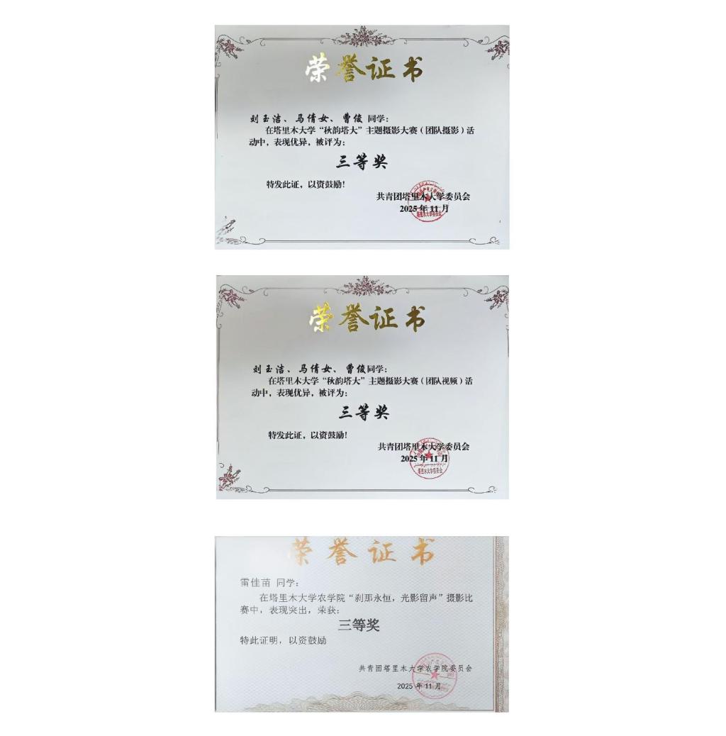 部分奖项奖状如下:
