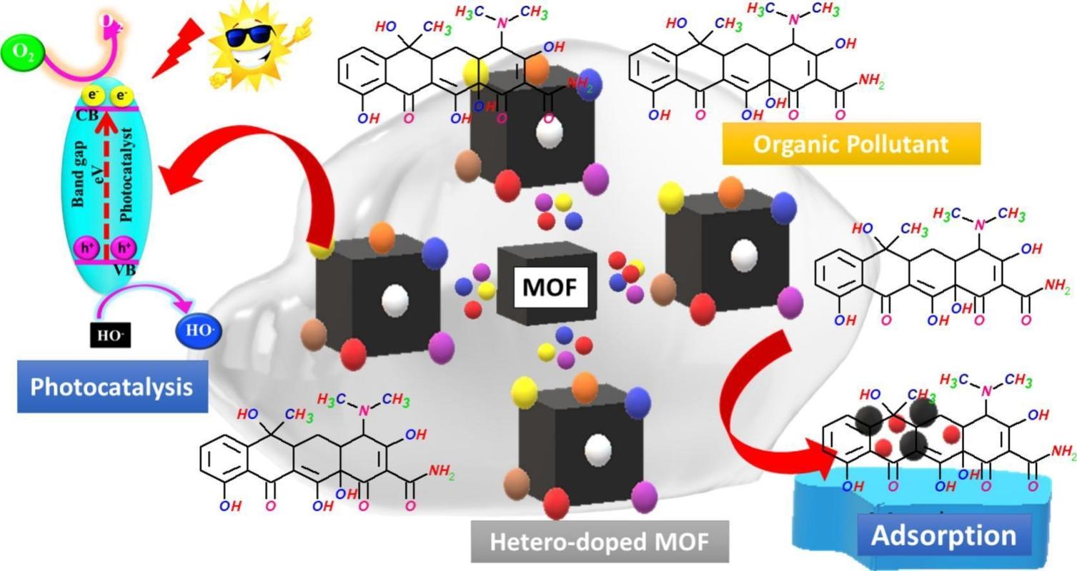 该论文率先剖析了原始MOFs的结构特性与局限性,进而详细阐述了非金属(N、S、P、B)及金属(Fe、Co、Cu、Mn)杂原子掺杂策略及其对MOFs电子结构、能带调控、活性位点及稳定性的影响机制。本论文重点揭示了掺杂MOFs在吸附和光催化去除有机污染物过程中的作用机理,包括π-π堆积、氢键、配位作用、静电吸引以及活性氧物种介导的氧化降解路径。此外,论文还系统评估了掺杂MOFs在可回收性、规模化制备及环境安全性方面的挑战,并提出了未来设计稳健、高选择性、可持续MOF基水处理材料的方向与原则。该研究为相关领域学者及环境政策制定者提供了系统的修复策略与理论指导,对于推动掺杂MOFs在污水处理系统中的实际应用具有重要意义。