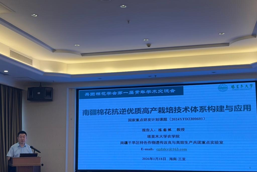 2026年1月17日至19日,新疆生产建设兵团棉花学会第一届青年学术交流会在海南三亚举行。会议以“创新驱动·绿色发展——青年科技赋能兵团棉花产业未来”为主题,吸引了国内棉花研究领域的众多青年科技工作者与专家学者。学院万素梅教授受邀担任本次会议特邀专家评委,学院陈国栋教授、曹楠副教授参会并分别作专题学术报告。