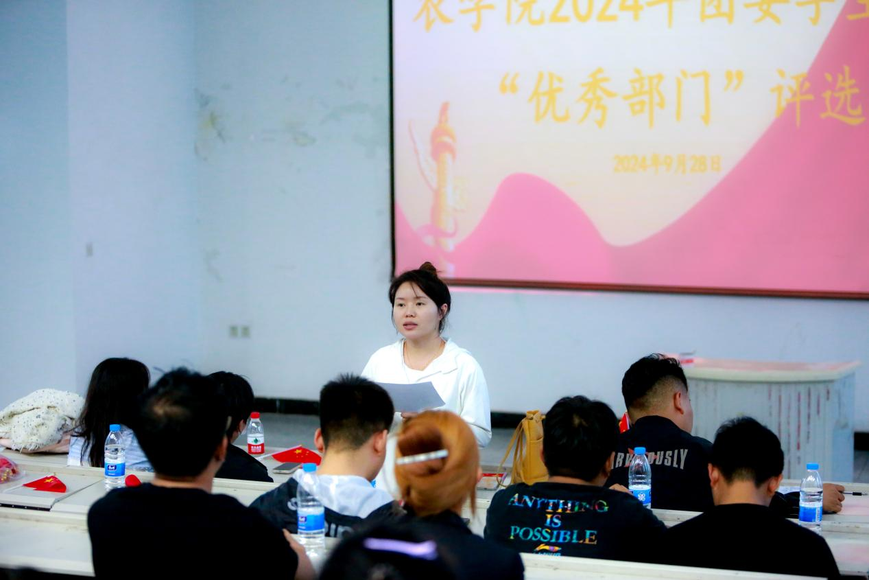 此次评选由部门汇报及才艺展示两方面组成,活动伊始,由主持人任冬涵同学讲述此次活动的评选细则。紧接着,各部门汇报人按抽签顺序依次上台展示,结合ppt汇报了2023-2024学年度的部门工作开展情况、工作总结及对未来展望等,充分展示了学院团委、员工会在积极服务广大同学、营造良好校园氛围等方面取得的显著成果。汇报过程中语言精练、风采独特、内容丰富;不少才艺表演中彰显爱国精神,借即将到来的国庆佳节表达对祖国的热爱和美好祝愿。活动最后,由王婷婷进行总结,对大家的工作成果给予肯定,并提出部门间可以有更多的交流和分享,同时希望各部门加强管理,提高效率,充分发挥员工会干部的先锋模范作用。