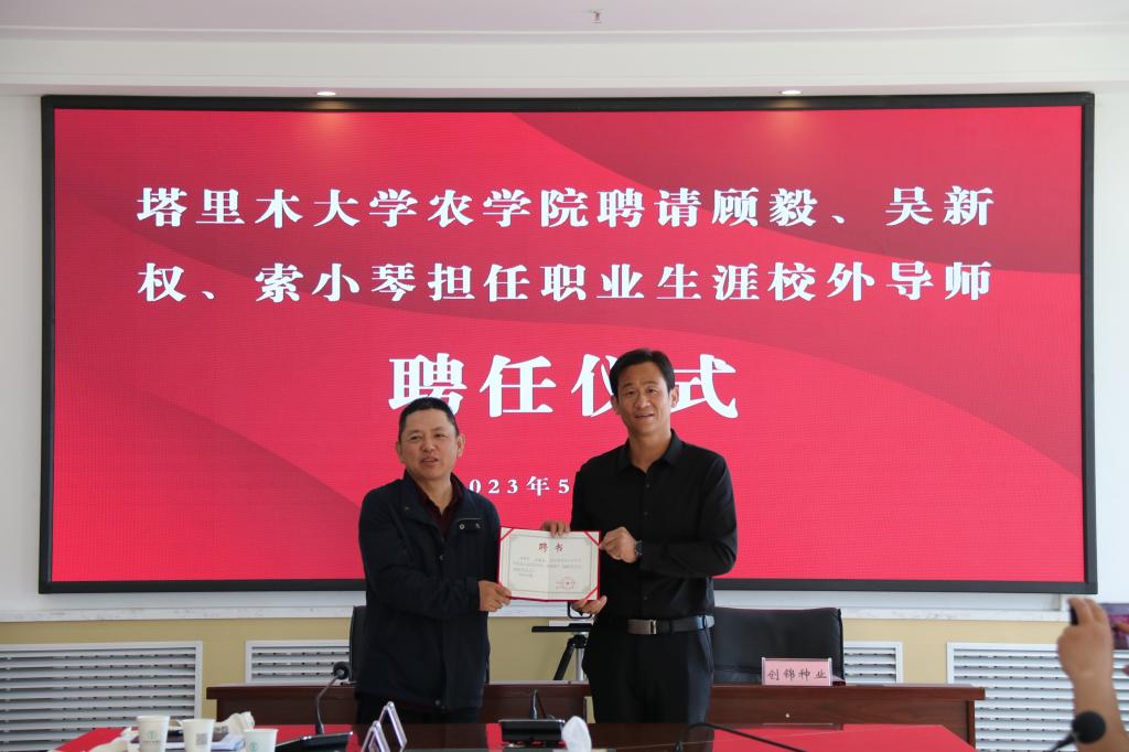 在“塔大-创锦”校企合作暨双选招聘座谈会上,四师供销社党委委员、副主任、副总经理路疆庆等10余位社属分公司经理分别就供销社及各分公司情况进行简单介绍,刘兵就304永利集团官网毕业生情况进行简单交流并现场为顾毅、吴新权、索小琴颁发“职业生涯校外导师”聘书。