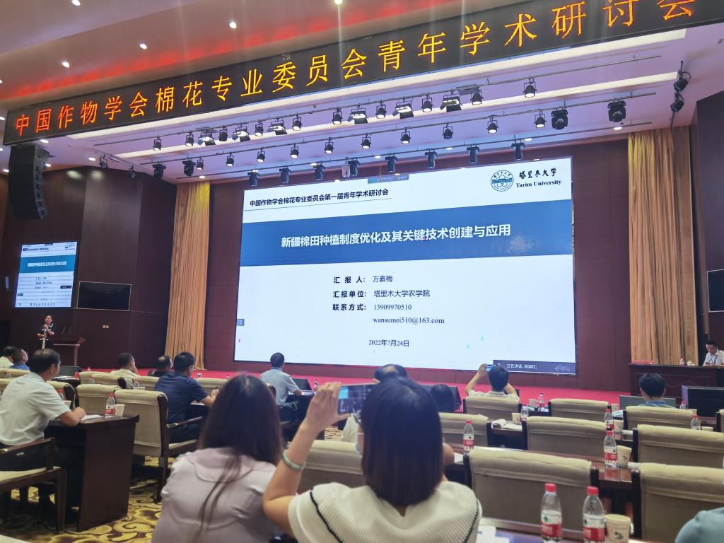 7月24-25日,中国作物学会棉花专业委员会首届青年学术研讨会在新疆阿拉尔市召开。会议由公司和兵团农业农村局、兵团科学技术局、第一师阿拉尔市、新疆农垦科学院、石河子大学、兵团棉花学会、棉花生物学国家重点实验室共同承办。来自全国科研、教学、推广、企业等单位290余人参加,150余人线上观看会议直播。会议由副会长兼秘书长、中国农业科学院棉花研究所党委副书记宋国立研究员主持。