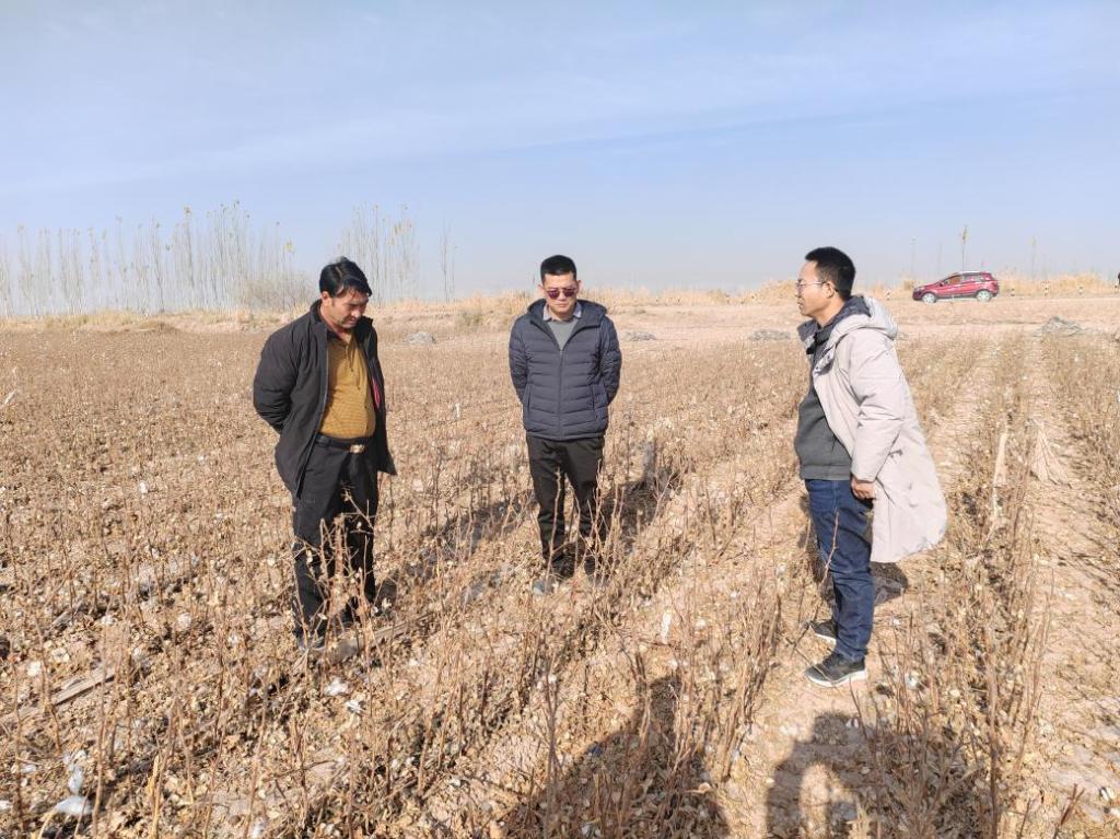 双方前往棉田进行了实地的考察,向当地农户咨询了相关的棉田肥水措施,并向当地农户指导棉花优质高产栽培管理技术。