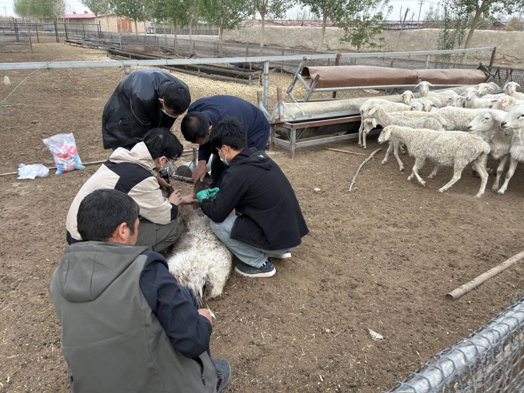 团队实地去“科技兴村”养殖示范点查看澳湖羊生长发育状况,了解春季牛羊寄生虫情况,对蜱虫防治、圈舍消毒提出科学措施。