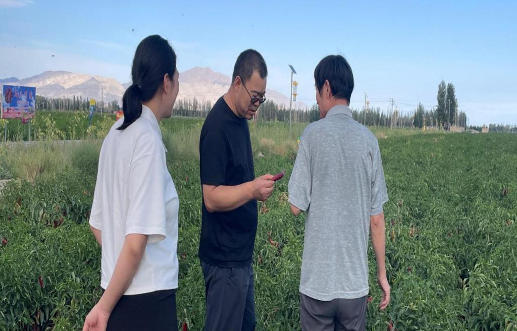 之后,团队老师赴和硕县曲惠镇农业科技示范展示基地现场观摩辣椒新品种在产区的种植表现,解决种植户们提出的品种更新换代问题。