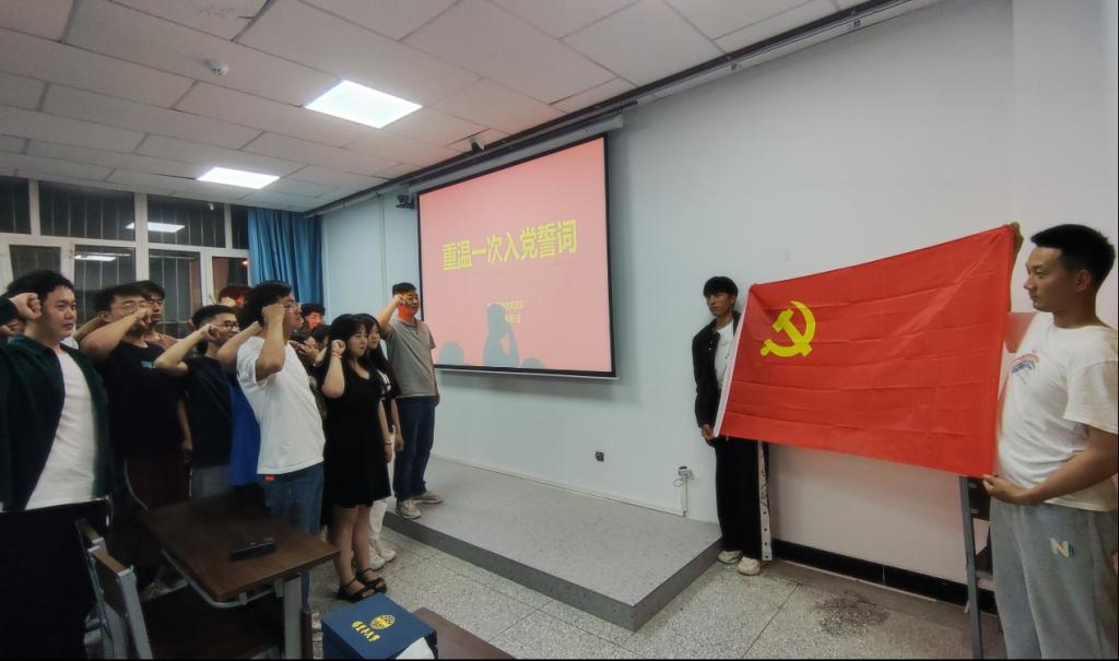 活动开始,党支部书记秦路兵带领党员重温一次入党誓词,全体党员面对鲜红的党旗和庄严誓词,共同高举右拳,庄严宣誓:“我志愿加入中国共产党,拥护党的纲领,遵守党的章程……随时准备为党和人民牺牲一切,永不叛党。”这铮铮誓言是担当、是责任,是初心所向、是行之所往。入党誓词句句铿锵有力,响彻会场,以饱满的激情和声音传达出了身为共产党员的自豪感与使命感。