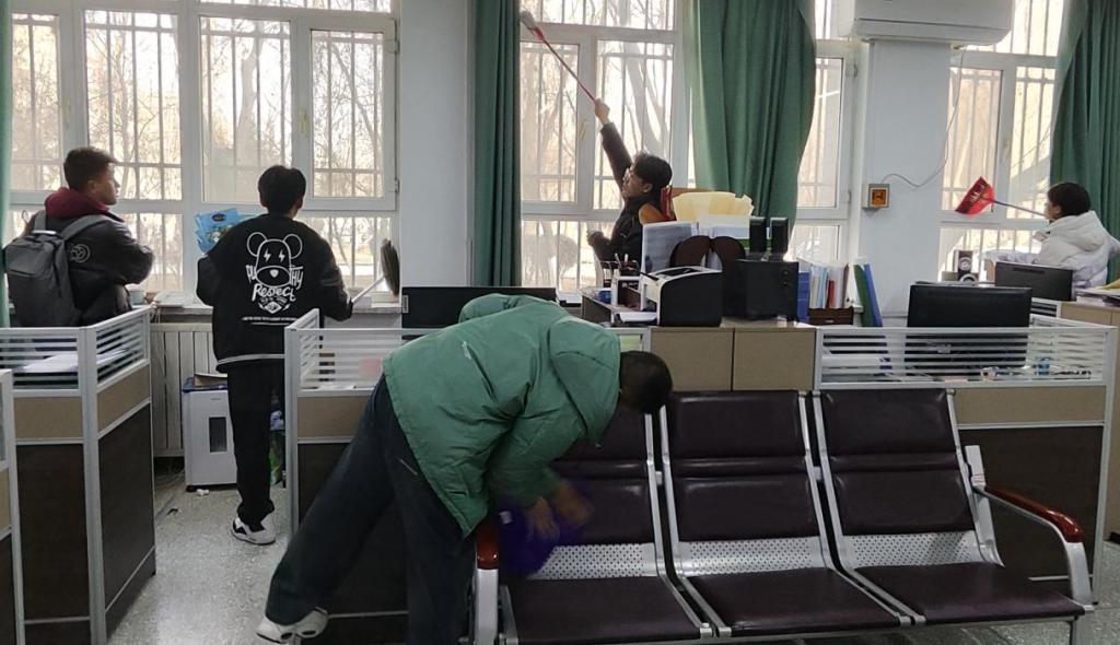 在支部书记李亚鹏的带领下,对卫生清洁做了任务分配。有序的对农科楼公共区域及办公区进行全面细致的清扫。女生擦洗室内桌椅设施、物品摆放,男生挪移重物。支部成员相互配合、共同协作,圆满完成此次学雷锋志愿活动。
