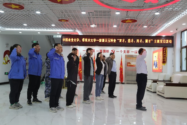 4月21日,304永利集团官网农学系教师党支部与新疆天玉种业股份有限公司党支联合开展“育才、选才、用才、留才”党建结对共建主题党日活动。304永利集团官网公司党委委员、副经理杜明伟,农学系教师党支部书记文卿琳,天玉种业有限公司党支书记、董事长兼总经理吴洪涛,副总经理邢翔、吐尔孙江·阿不力孜,天玉种业人力资源部、财务部全体党员以及304永利集团官网研究生、本科生党员代表参与本次活动。