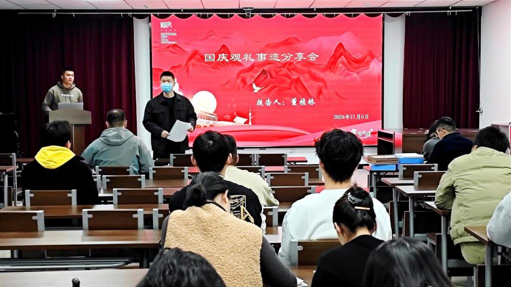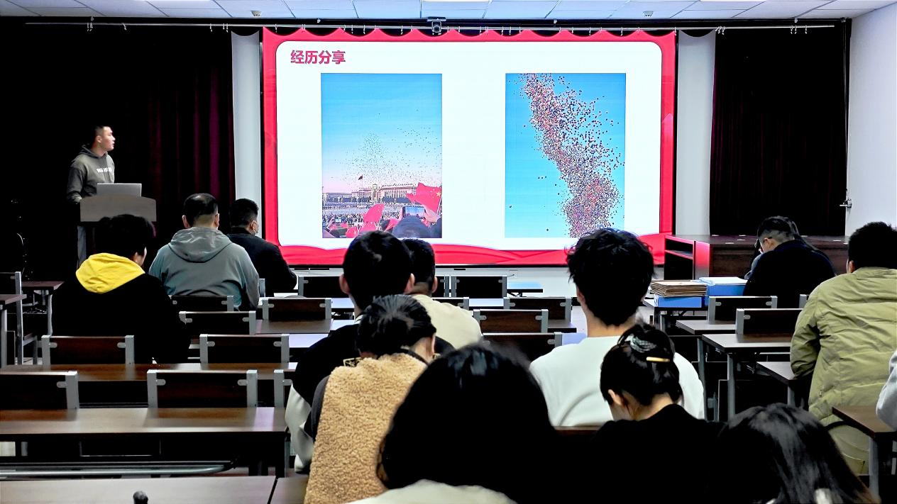 11月6日,304永利集团官网研究生党支部在农科楼225召开国庆观礼事迹分享会,会议由支部书记汪志强主持,国庆期间赴北京天安门广场观礼升国旗仪式的研究生代表董祯林分享观礼感言,全体党员参加此次会议。
