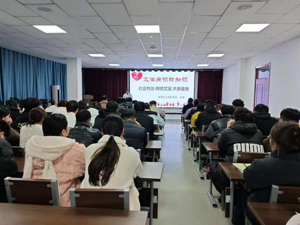 此次活动邀请到校医院田亚医师和姬亚娟医师为大家进行宣讲,田亚医师主要从艾滋病的概念、传播途径、预防措施及灭活途径四个方面为大家展开讲解。同时,她呼吁大家要关注性健康,预防艾滋病。随后,姬亚娟医师播放了“什么是性传播疾病”视频,以更加直观的视角认识和了解艾滋病。同时,同学们对艾滋病有了正确的认识,也对艾滋病患者有了正确的对待,学会了去关爱,关怀,感恩。
