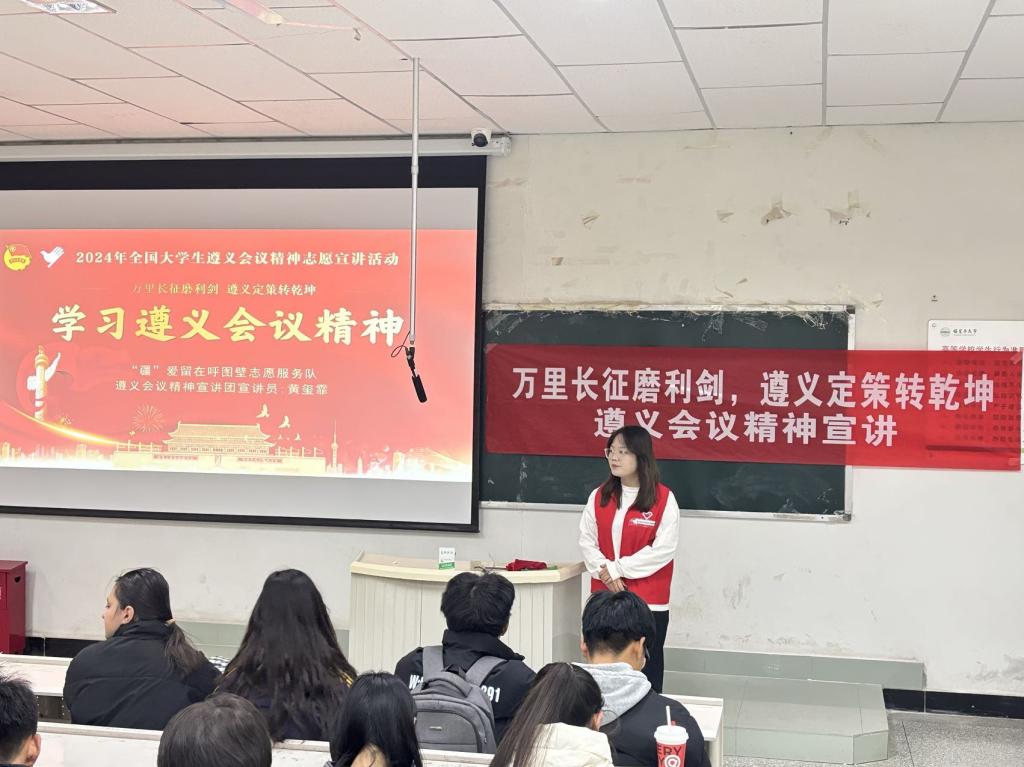 今年是遵义会议召开90周年。为使广大青年学子更加深入地了解了遵义会议的历史地位和遵义会议精神的重要内涵,激发大家的爱党爱国情怀和奋斗精神,2024年11月27日304永利集团官网农学2023级4班团支部携手2024年全国老员工遵义会议精神志愿宣讲团“‘疆’爱留在呼图壁志愿服务队遵义会议精神宣讲团”开展了以《万里长征磨利剑 遵义定策转乾坤——学习遵义会议精神》为主题的遵义会议精神宣讲。