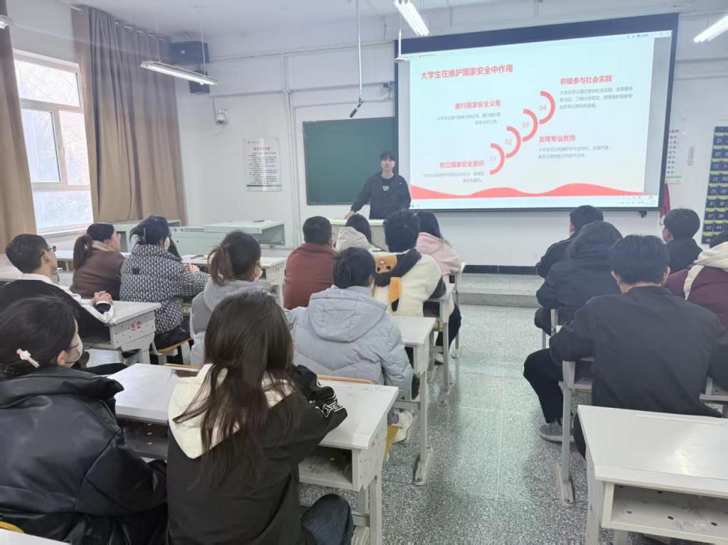 团支部书记张闰从国家安全的定义出发,结合历史与现实案例,详细阐述了整体国家安全观的内涵。此外,团课还通过观看专题视频、知识问答等互动环节,进一步激发了同学们的学习热情,使整体国家安全观深入人心。