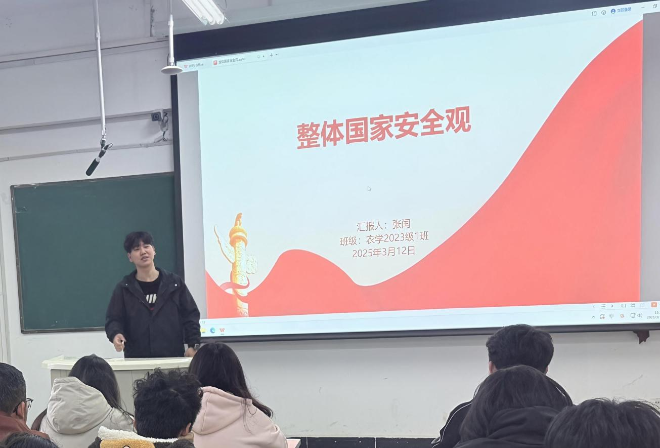 为进一步增强员工的国家安全意识,引导青年员工树立正确的整体国家安全观,2025年3月12日,农学2023级1班开展以“增强国家安全意识,共筑青春安全防线”为主题的团课。