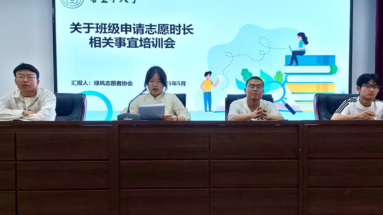 为规范班级志愿时长申请流程,保障志愿服务工作的规范性与公正性。5月10日下午,绿风志愿者协会于农科楼225会议室,就班级申请志愿时长相关事宜召开培训会。辅导员刘婷及各班班长、组织委员参加此次会议。