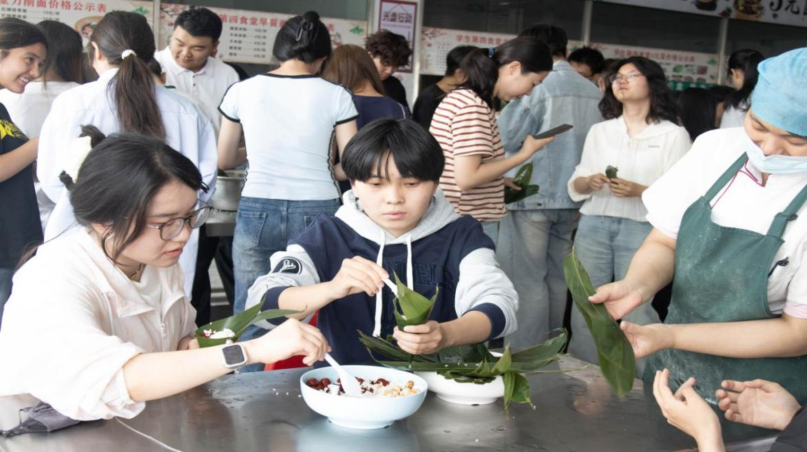 5月31日,学院在四号食堂举办“粽叶飘香传温情 民族团结一家亲”活动,学院辅导员郑向冉、刘婷、王宏凯及各民族员工代表共同参与此次活动。