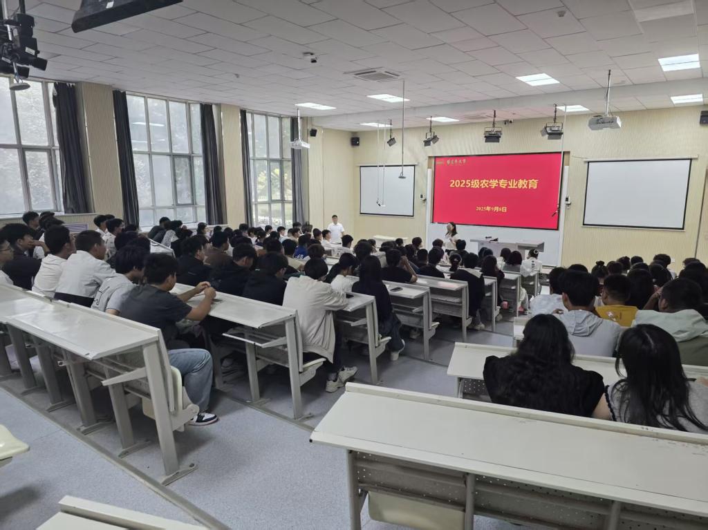 9月8日上午,2025级农学专业新生入学教育在综合楼阶教1举行。文卿琳教授应邀为2025级农学专业新生开展了新生专业教育,王进斌、韩心培老师及全体新生参加。