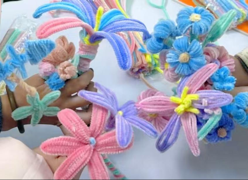 活动伊始,负责人向同学们演示了扭扭棒的使用方法。之后,一根根扭扭棒在同学们灵巧的双手上飞快地缠绕、折叠、拼接,很快,在成员们的全情投入下作品初具雏形,有的同学变化出了一簇精致的手捧花,有的同学手中飞出一只飘扬的挂件。在最后的展示环节中,成员们举着自己的作品合影留念,手中的的作品不仅承载着个人的创意,更饱含着团队成员间的无言默契。