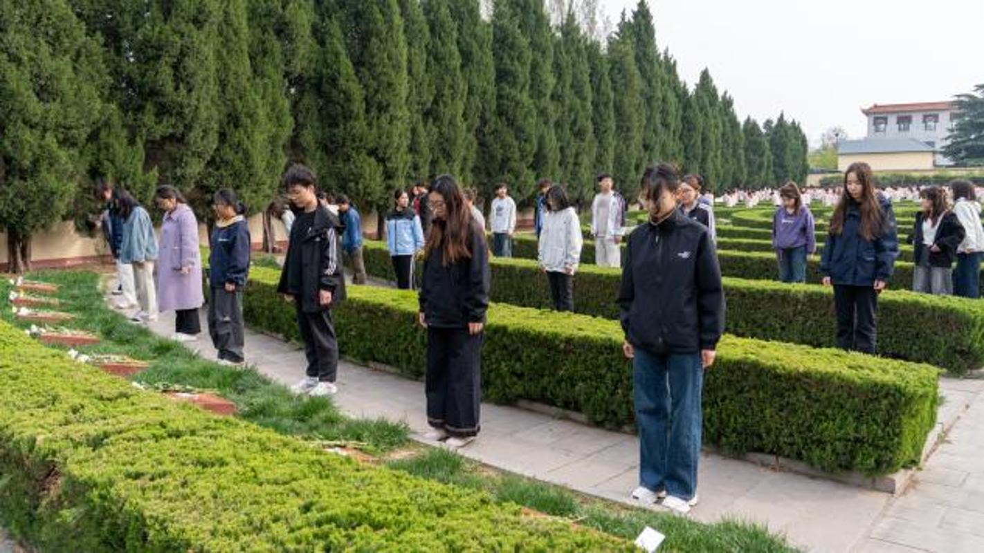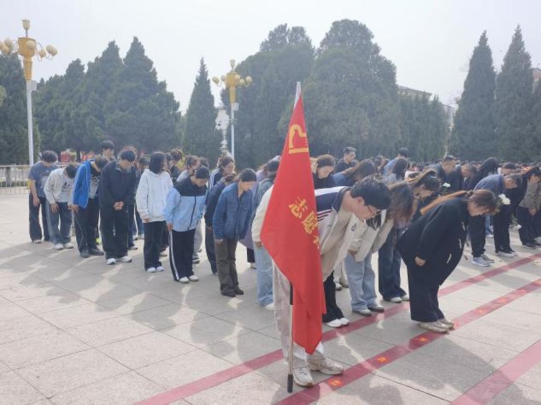 活动当天,安阳市烈士陵园庄严肃穆,松柏常青。下午16:00,祭扫仪式正式开始。全体师生身着素装,整齐列队于革命烈士纪念碑前,高唱中华人民共和国国歌,雄壮的歌声在陵园上空回荡,国歌唱毕,全场肃立默哀3分钟,寄托对英烈的深切哀思。