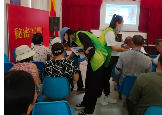 在宣讲结束后,团队成员对现场的职工们分发调查问卷和调研表,对当地农业的种植模式、机械化情况、化肥农药、农资投入等情况进行调研,耐心的指导职工们填写表格,分析目前阿拉尔周边团场对农业碳达峰碳中和的贡献与意向。