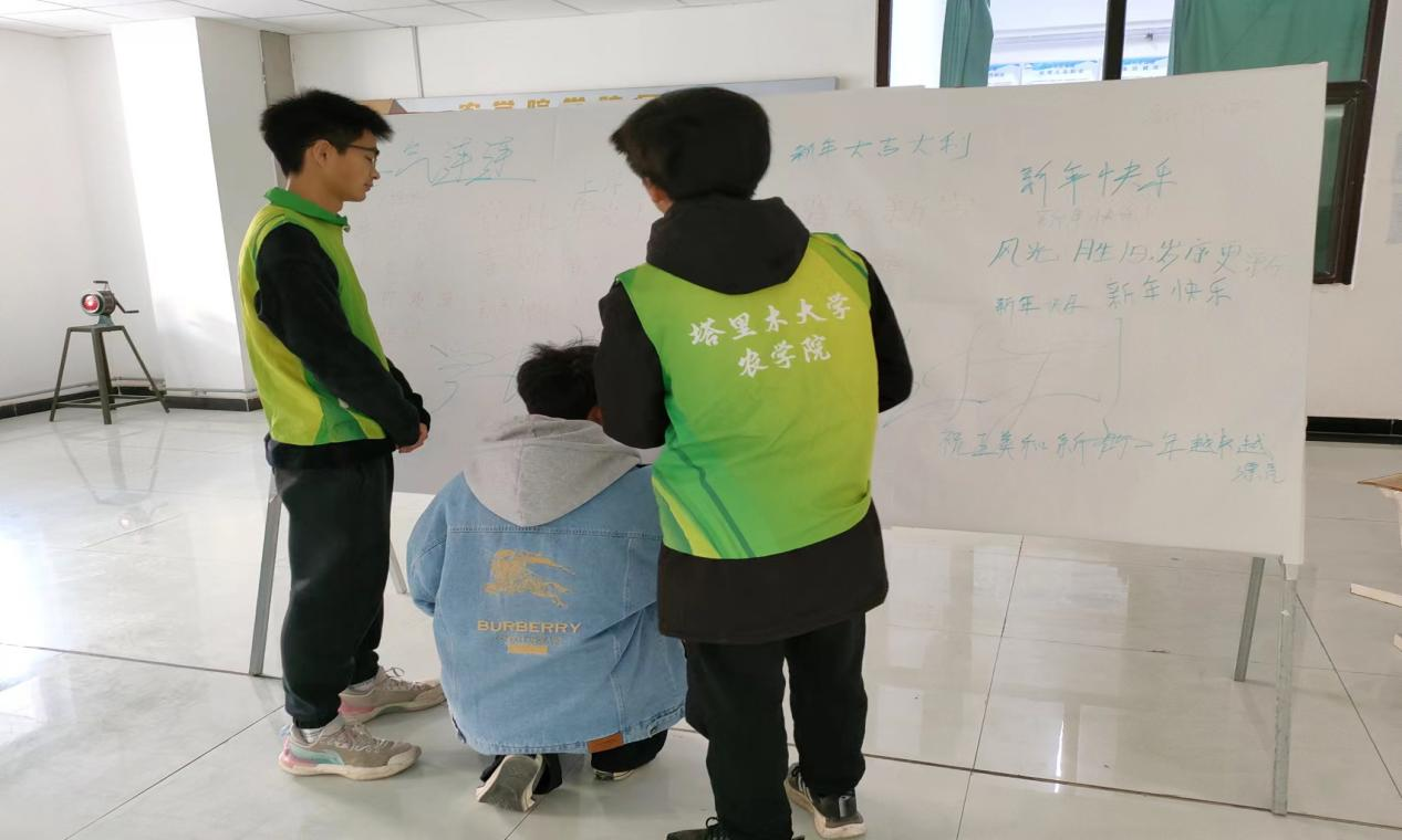 活动当天,志愿者们提前在宿舍楼东十七和宿舍楼东十三的大厅处各放置了一块白板,准备了充足的水彩笔和便利贴供同学们使用,鼓励大家在白板上写下自己的新年目标和祝福。活动结束后,志愿者们认真收集并珍藏每一位同学的新年留言,也对同学们给予自己最真诚的祝福,共同庆祝新年的到来。