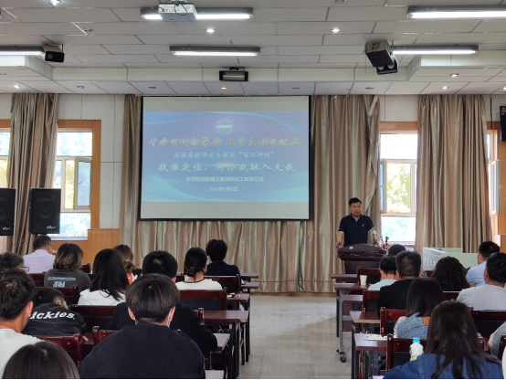 推进会上,新疆玉象胡杨化工有限公司董事长、党委书记田勇,销售部副经理赵湛为毕业生带来了“找准定位,将小我融入大我”为主题的就业动员报告。田勇董事长鼓励同学们要发挥农科学子的优势,敢于走出校园,走进农田,利用专业特长,努力成为一名优秀的农业工作者。