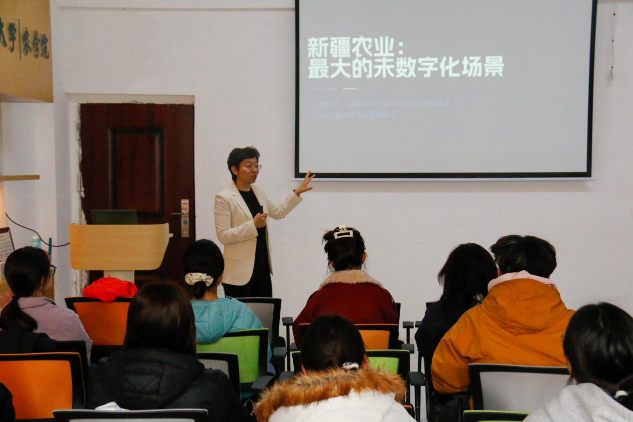 宣讲会上,曹茹娜以“AI时代下的农业变革”为切入点,结合全球经济形势、科技发展趋势,深入剖析了当前就业市场的机遇与挑战。她指出,“AI+产业”的融合模式将成为未来就业的核心方向。新疆作为农业大省,其数字化转型尚处蓝海阶段,为青年人才提供了广阔的发展空间。曹茹娜强调,选择大于努力,扎根农业领域,用科技赋能产业,不仅能实现个人价值,更能助力乡村振兴。